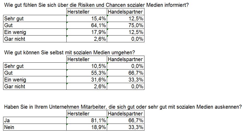 - 80 % der Hersteller halten sich für gut oder sehr gut über Social Media informiert.